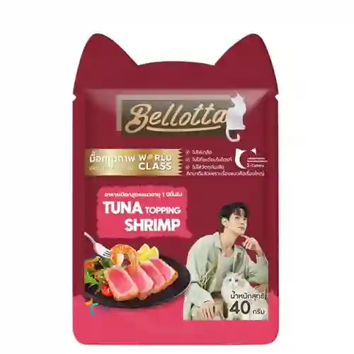 (โหล) 12x40ก. Bellotta Mini มินิ เพาซ์แมว รสทูน่าและกุ้ง Tuna&Shrimp