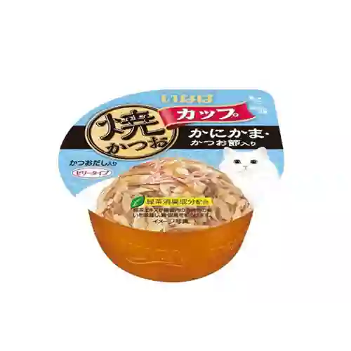 Inaba แมวถ้วย รสทูน่าปูอัดและปลาโอ เกรวี่ 80ก. (IMC-102)